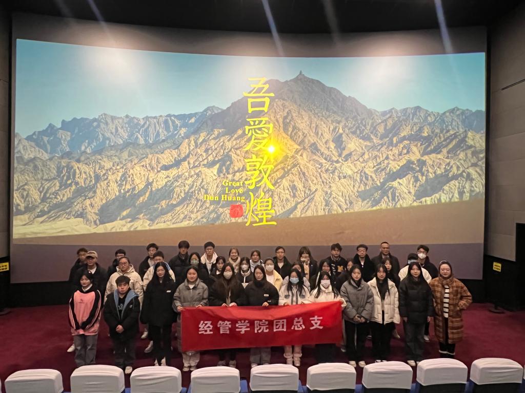 2023年12月18日下午,党委宣传部、校团委联合组织《吾爱敦煌》观影活动,3044AM永利两位老师带领公司38位同学前往了新视界天宝影城进行观看。